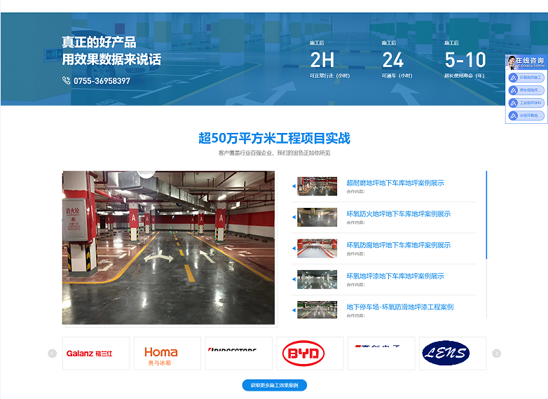 在网站首页,设计了banner页面、搜索框、热门产品推荐页面、产品图由客户提供真实案例,我们的设计师设计投放,联系方式在页眉和页脚均有设计,让用户在有需求时能第一时间联系我们。