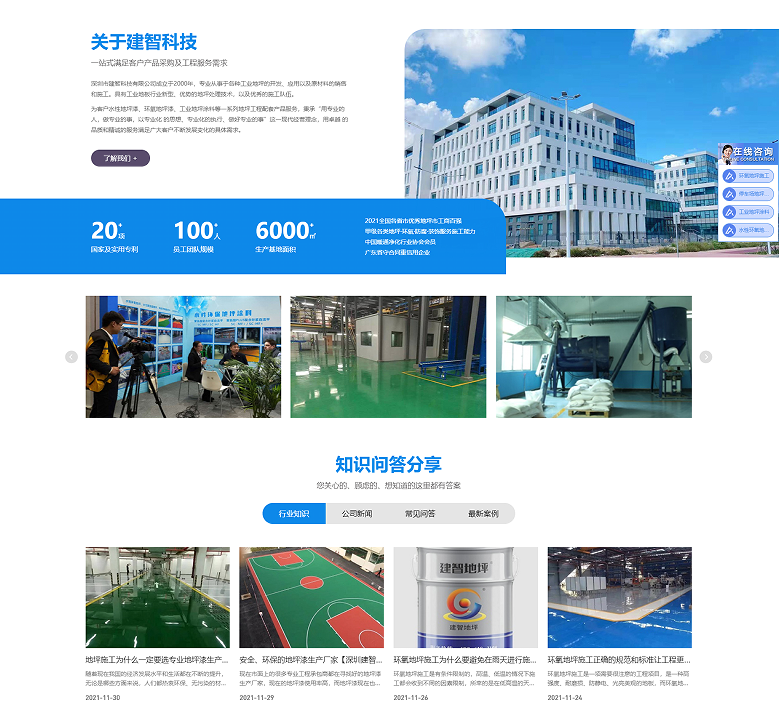 深圳建智科技有限公司成立于2000年,主要经营地坪原料出售、地坪施工、开发等项目,他们具有具有工业地板行业新型、优势的地坪处理技术,以及一支优秀的施工队伍。主营产品包括水性环氧树脂地坪漆、普通环氧树脂地坪漆、工程内/外墙涂料、建筑防水涂料等。是一家甲级施工单位,21年专注地坪系统一站式研发生产服务。