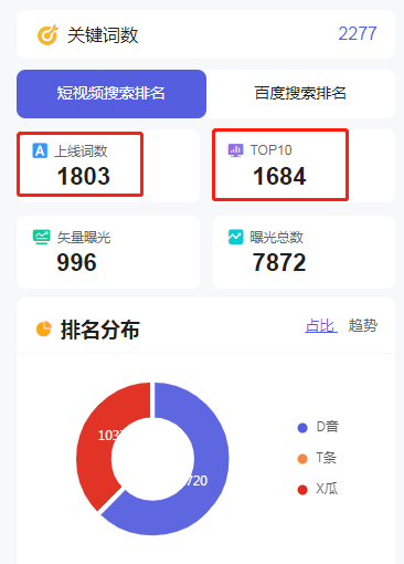 抖音关键词排名达到1896个,显著提升了品牌的在线可见度。